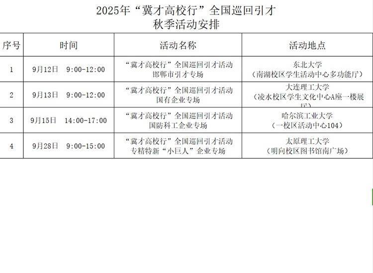 r附:2025“冀才高校行”全国巡回引才秋季活动安排表