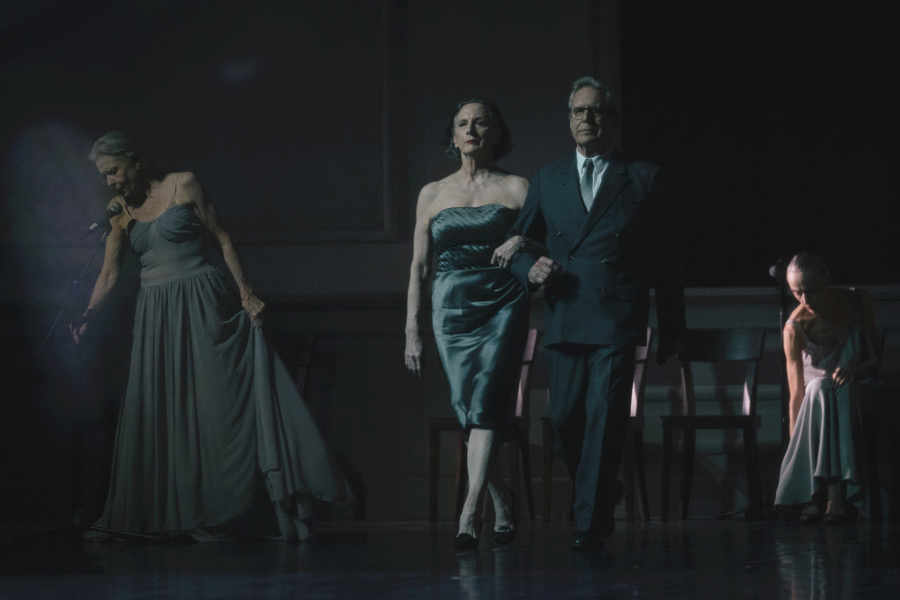如果说赵明的坚守是艺术圣火的燃动,那么另一群舞者的身影,则在时光褶皱里书写着艺术与生命的另一种对话。11月7日晚,《交际场:回响1978》的舞台上,三面斑驳的墙构筑成一座记忆的舞厅。九位白发舞者立于光影交界处,岁月的河流在他们身上留下蜿蜒的痕迹。当47年前的青春影像投射在透明纱幕上,时空在这一刻温柔折叠——苍老的手抬起,与屏幕上纤细的指尖隔空相触,像一片秋叶触碰春天的花瓣。